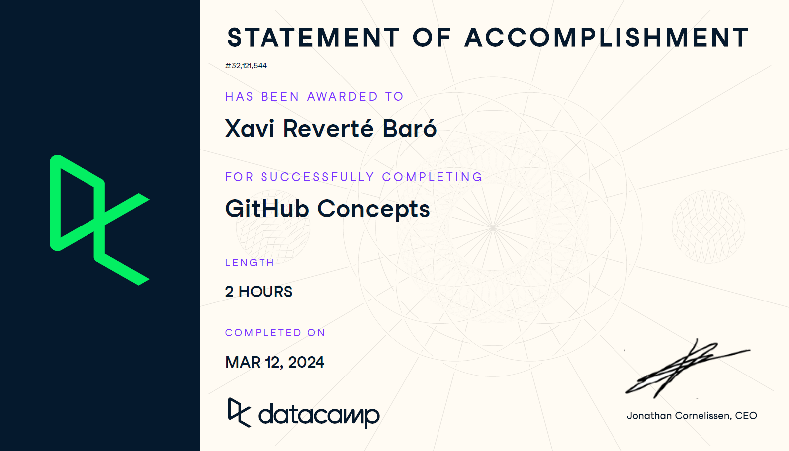 Continuing my lifelong learning journey, I've completed this course! Gain mastery over GitHub, a powerful collaboration platform essential for modern developers and data scientists. From creating repositories to managing branches, issues, and pull requests, I've learned how to effectively collaborate and track project progress. With practical exercises covering key GitHub concepts, I'm well-equipped to contribute to any coding or data project with confidence.