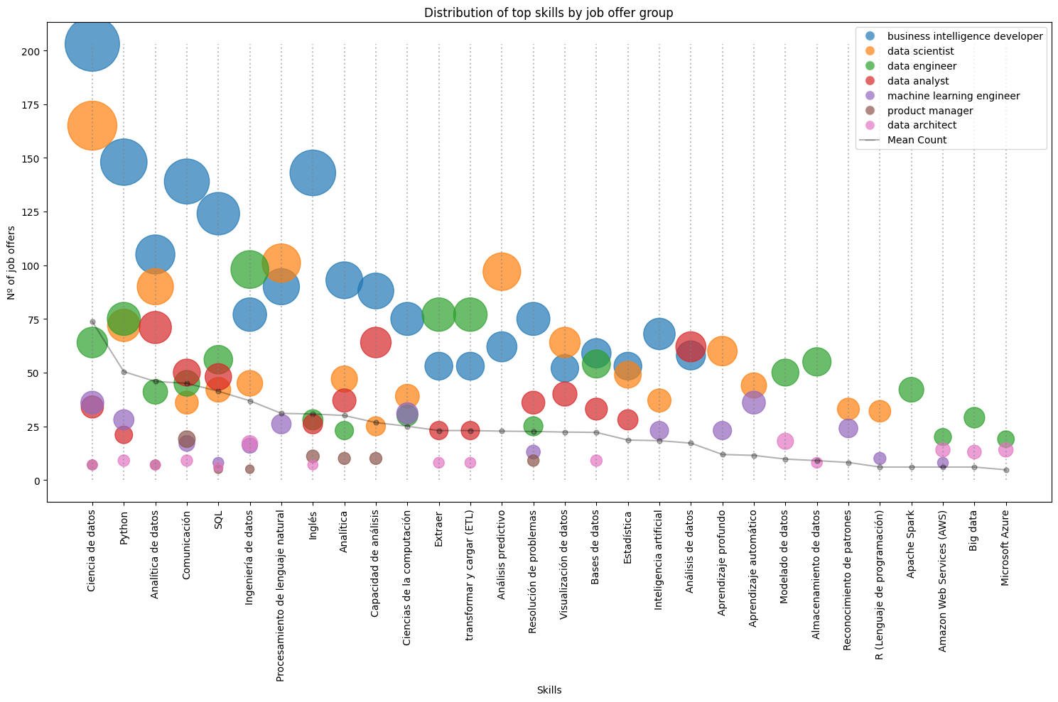 This project enhanced my technical skills in web scraping, NLP, and clustering, and deepened my understanding of job market dynamics. Key findings include: Python as the most demanded programming language | Data analytics over data engineering | English communication skills | NLP as the top ML skill | Needed analytical capacity and problem-solving soft skills | Computer Science, ETL, Data Visualization, Databases, and Statistics as a main knowledges.